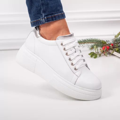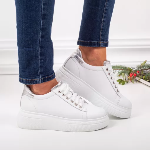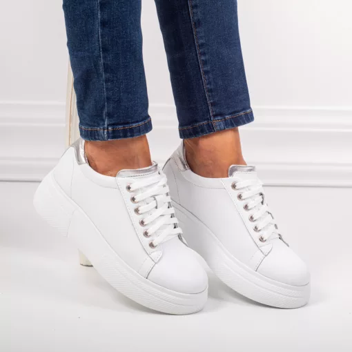 Pantofi damă piele naturală 206 alb/argintiu