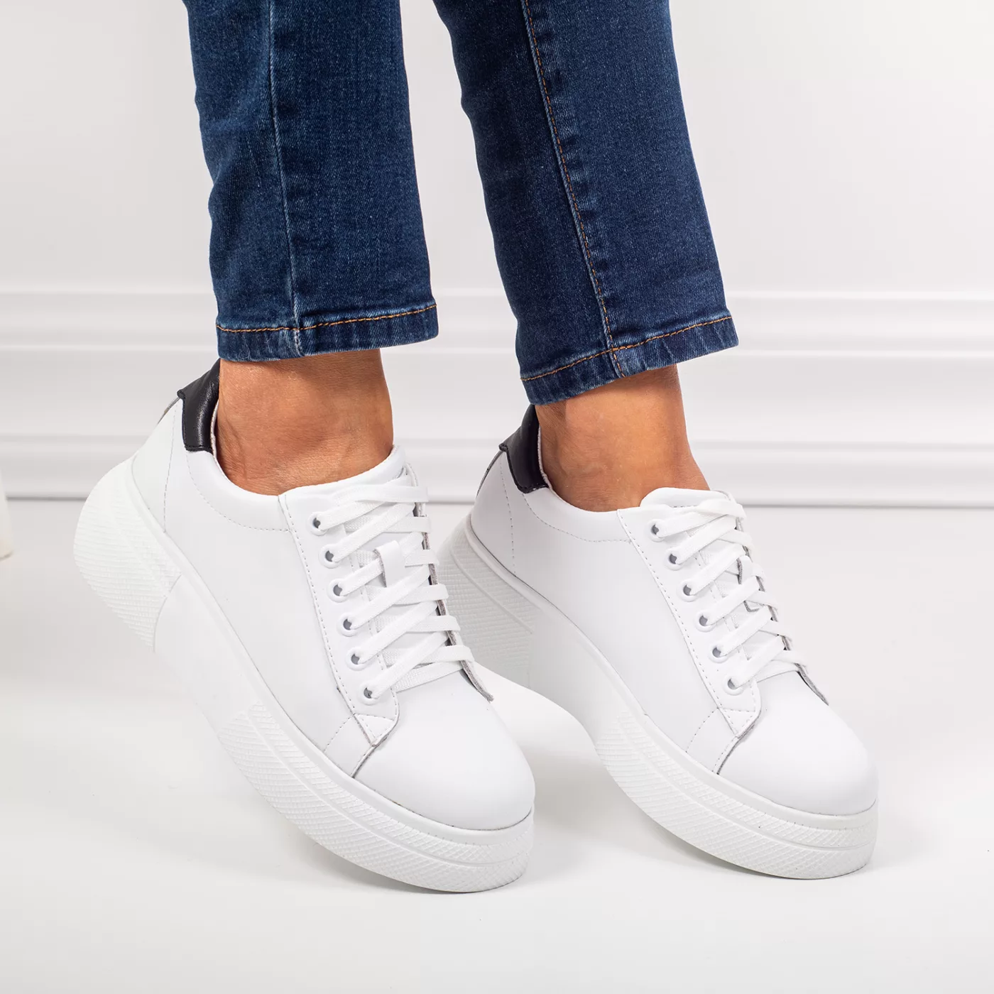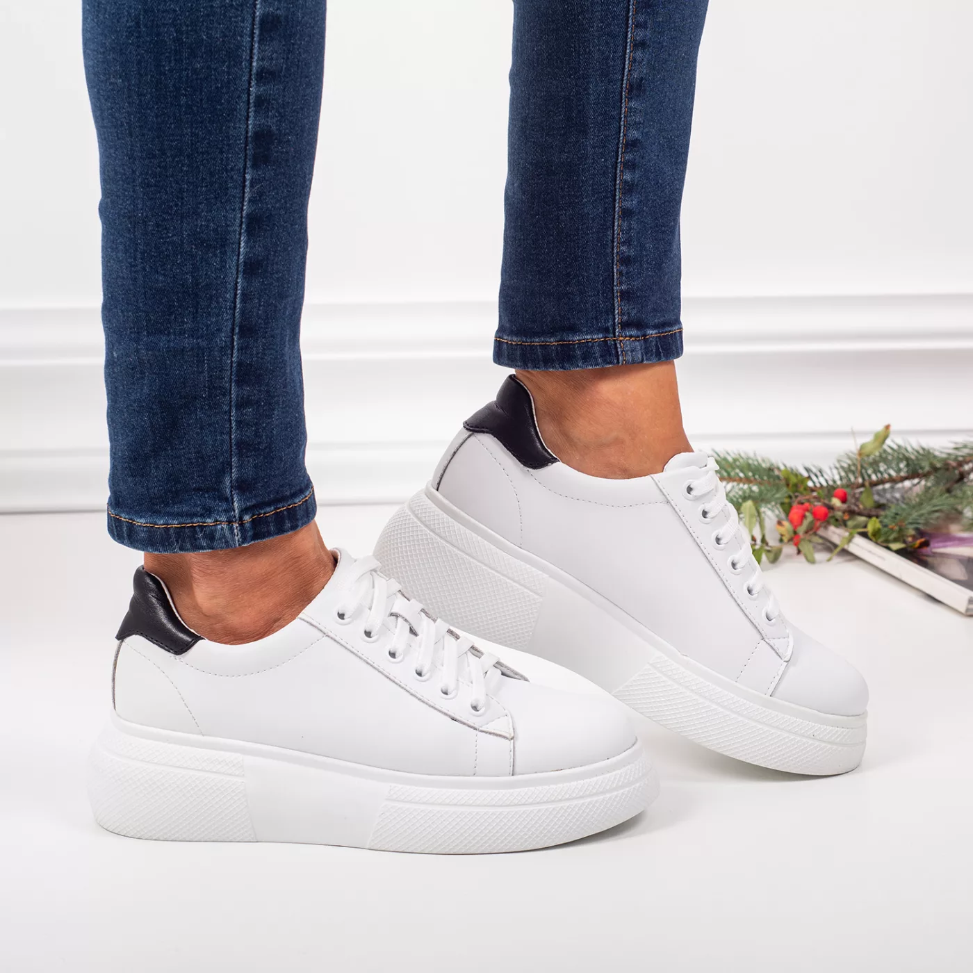 Pantofi damă piele naturală 207 ASTI alb/negru